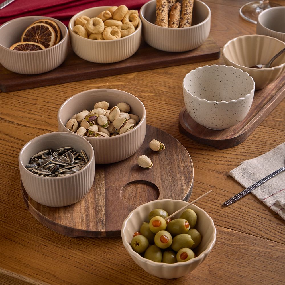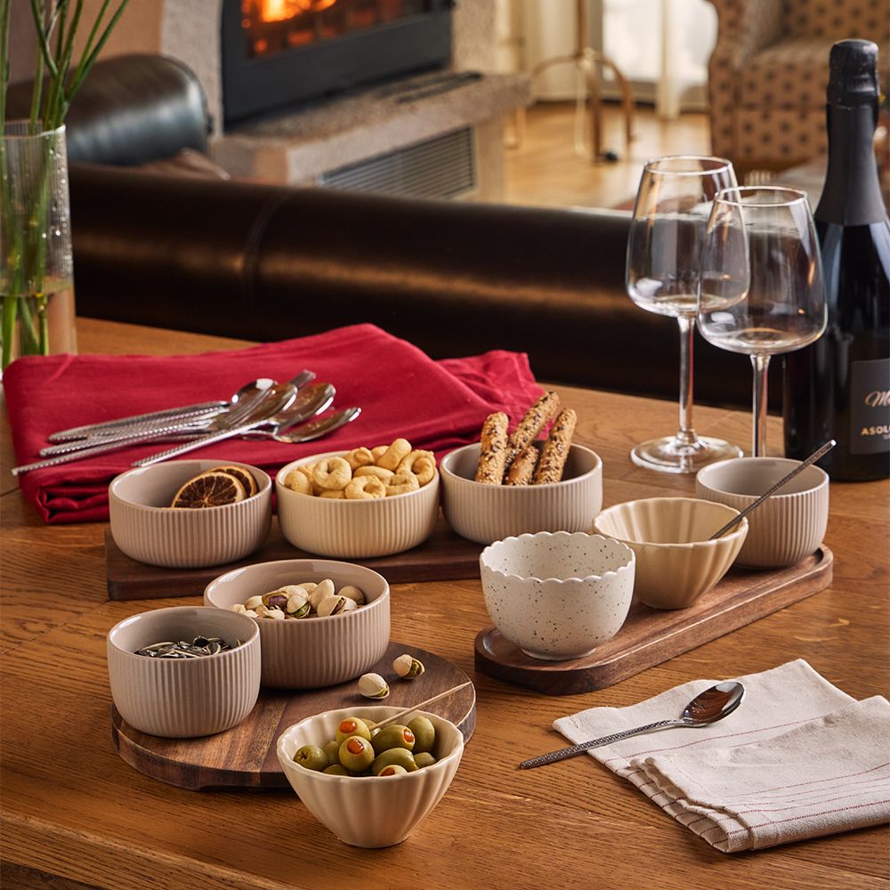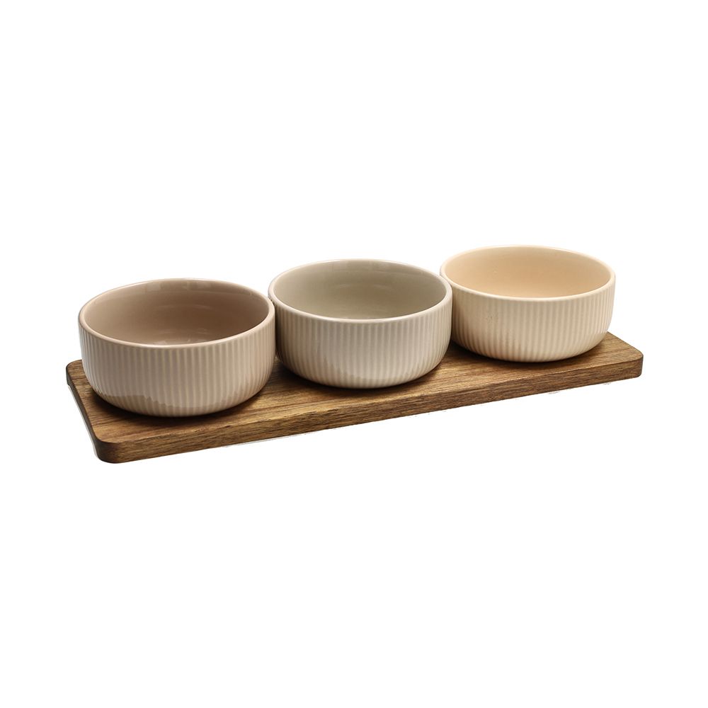 Los boles son de gres. Aptos para lavavajillas y microondas.